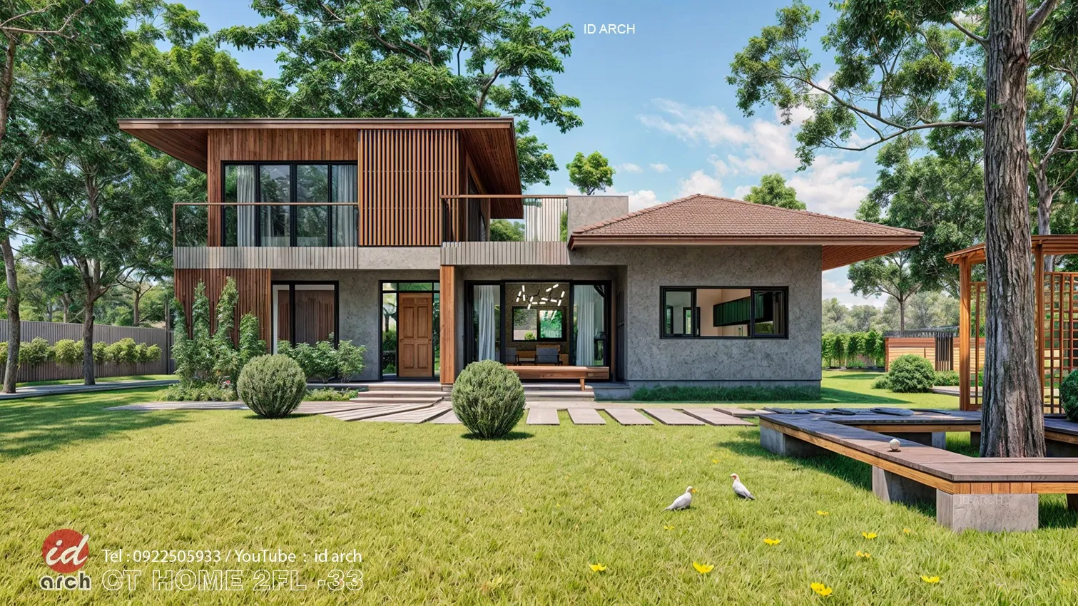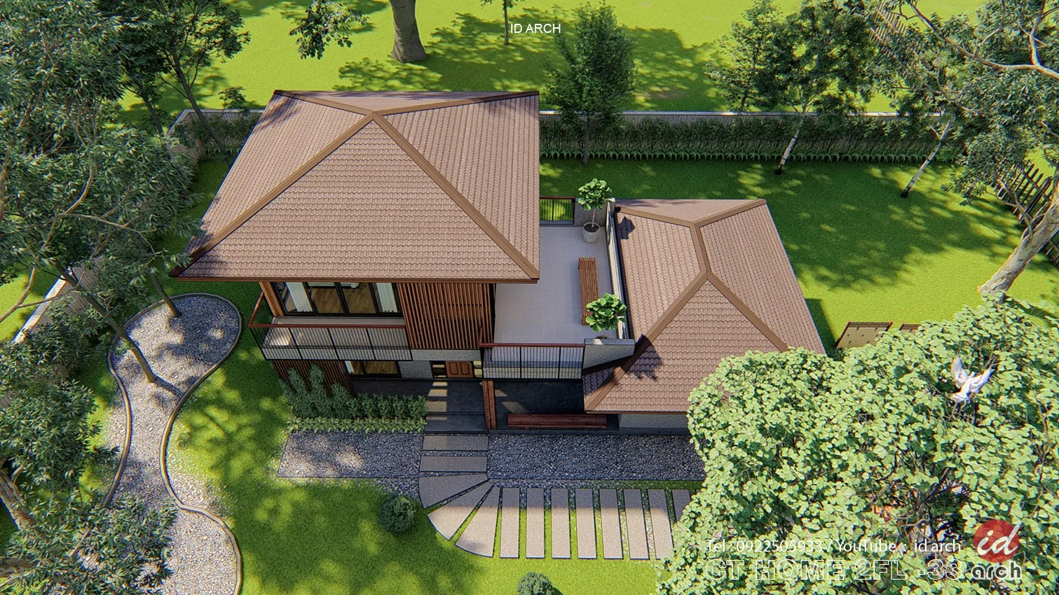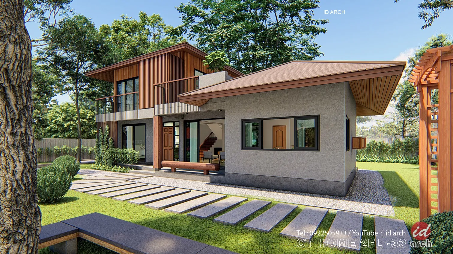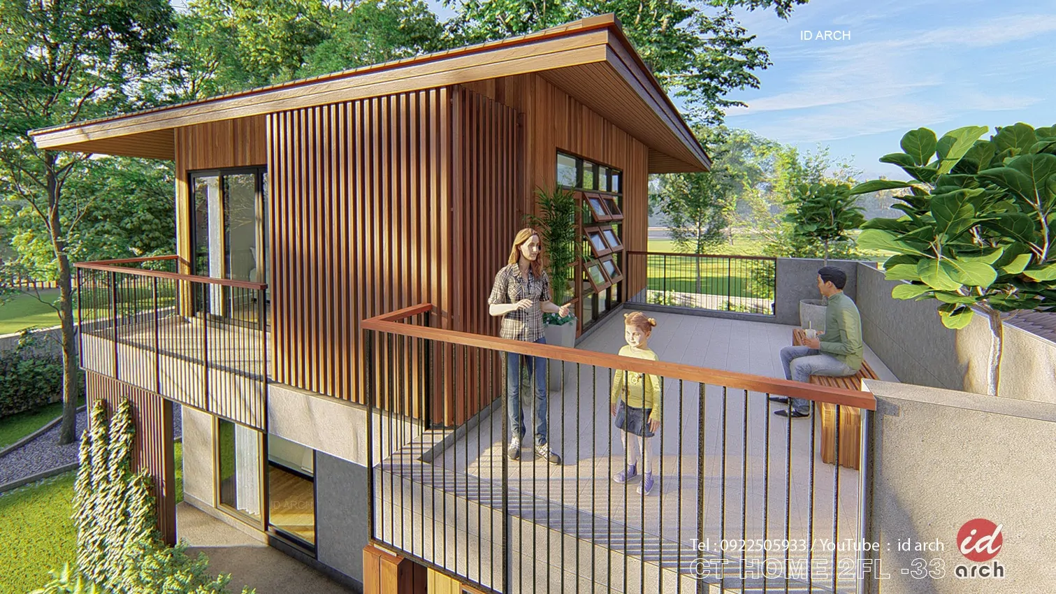 วันนี้เราจะพาเพื่อนๆ แบบบ้าน ไปชมการออกแบบจากทีมงาน Id Arch เป็นบ้านแนวบ้านรีสอร์ท CT HOME2FL-33 เป็นแบบบ้านขนาดกระทัดรัด แนวรีสอร์ท และการพักผ่อน โดดเด่นด้วยพื้นที่นั่งเล่นหน้าบ้าน และมีพื้นที่ระเบียงกว้างชั้น2 สำหรับพักผ่อนในช่วงเช้าหรือเย็น และสามารภมองวิวสวยๆ ในมุมสูงได้ ไม่ว่าจะเป็นวิวทุ่งนา วิวเนินเขา วิวสวน วิวแม่น้ำ วิวทะเล พื้นที่ภายในเหมาะสำหรับการใช้ชีวิตแบบเรียบง่าย ฟังชั่นการใช้งาน มี 2 ห้องนอน ชั้นบน 1 ชั้นล่าง 1 มีห้องน้ำในตัว และมีห้องน้ำส่วนกลางชั้นล่างอีก 1 ห้อง มีห้องครัวรวมกับห้องรับประทานอาหาร และห้องโถงกลางเป็นห้องพักผ่อนและรับแขก และระเบียงหน้าบ้าน